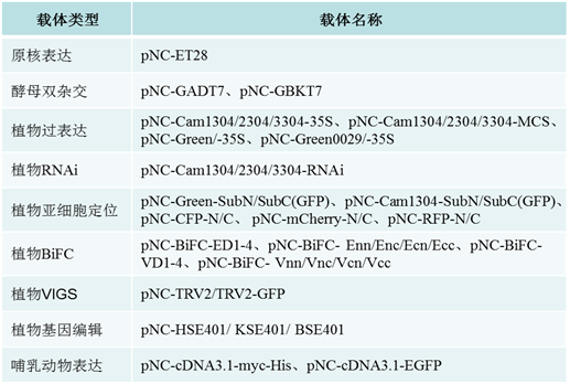 为了方便Nimble Cloning技术的推广使用,言普等还构建了一系列配套的系统表达载体,包括原核表达、酵母双杂交、植物过表达、植物RNAi、植物亚细胞定位、植物BiFC、植物基因编辑、植物VIGS、哺乳动物表达载体等,初步形成了一个标准化的克隆系统,为基因功能研究提供了一个便利的技术平台。该套载体向科研人员开放共享,可免费索取使用(Email: yanpu@itbb.org.cn, QQ: 328995517)。